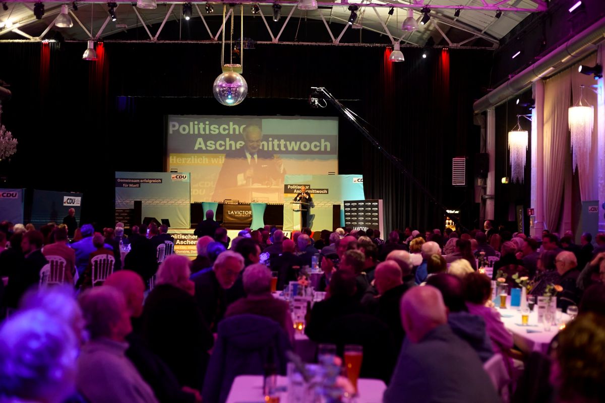 Über 450 Gäste wurden in der La Victoria Eventhalle zum gemeinsamen Politischen Aschermittwoch der CDU Marl, der CDU Datteln, der CDU Dorsten, der CDU Oer-Erkenschwick und der CDU Waltrop begrüßt – ein starkes Zeichen für das große Interesse an Ideen zur Bewältigung der Herausforderungen unserer Zeit.