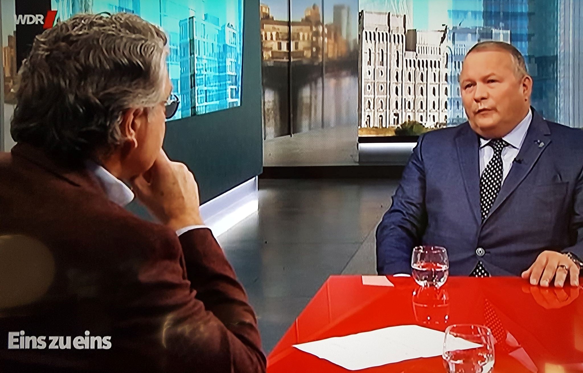 TV-Auftritt im WDR: Josef Hovenjürgen steht in der Sendung „Eins zu eins“ Jürgen Zurheide Rede und Antwort.
