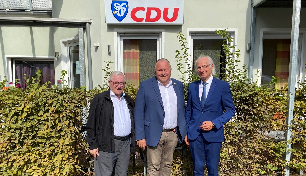 Gemeinsam mit dem ehemaligen Landtagskollegen und heutigen Präsidenten von Haus und Grund NRW, Klaus Stallmann (links), und Walter Eilert, dem Vorsitzenden von Haus & Grund im Ruhrgebiet, hat sich Josef Hovenjürgen, Landtagsabgeordneter und Parlamentarischer Staatssekretär, über die aktuelle Lage auf dem Wohnungsmarkt ausgetauscht und über drängende Fragen der Zukunft gesprochen.