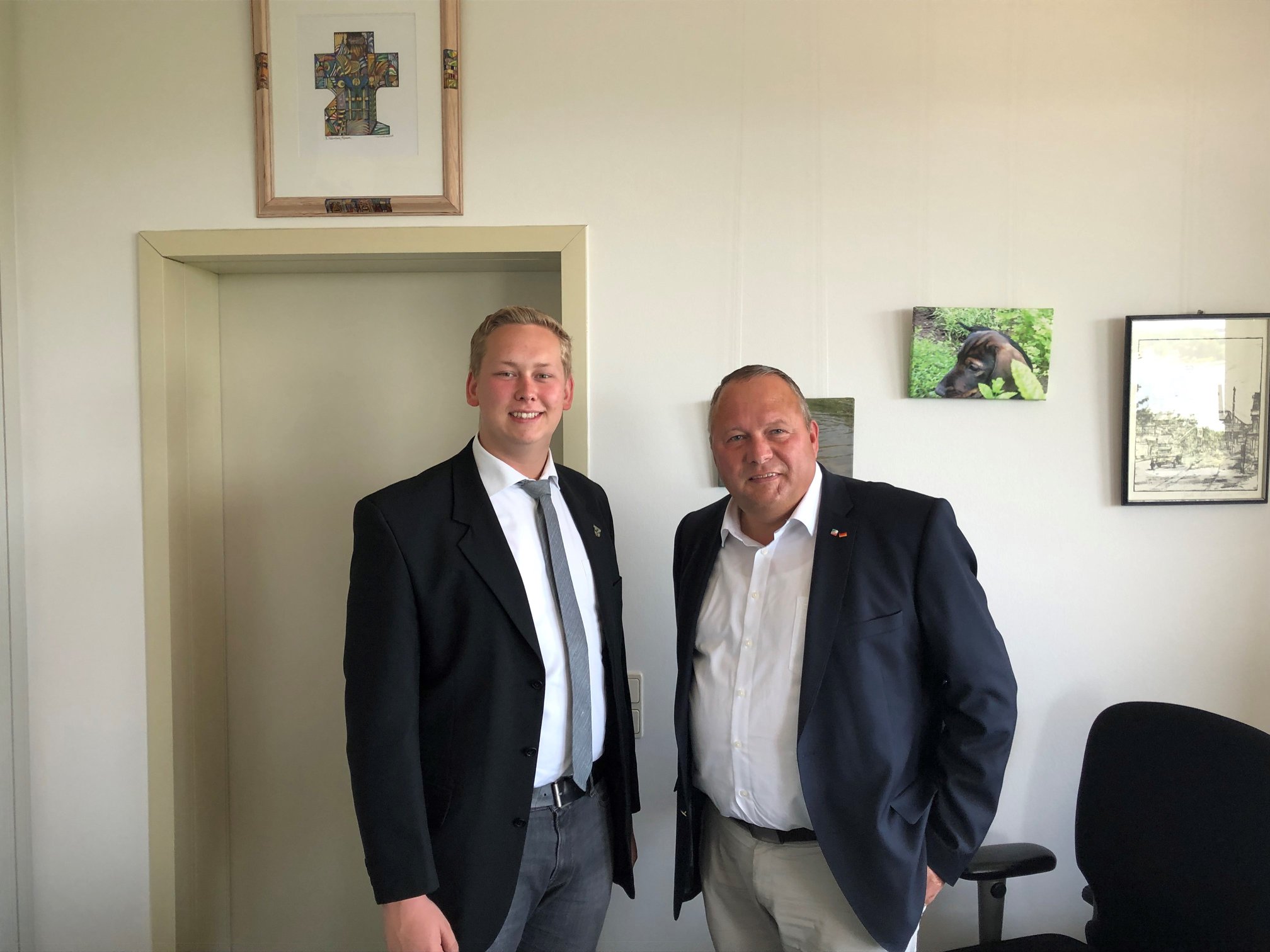 Heute startet der 2. Tag des Jugendlandtags in NRW, bei dem fast 200 junge Menschen im Alter von 16 bis 20 Jahren in die Rolle der Abgeordneten schlüpfen dürfen. So erleben sie live den parlamentarischen Arbeitsalltag als Landespolitiker und gestalten Politik konstruktiv mit; die Themen werden im Vorfeld von den Teilnehmern ausgesucht. Josef Hovenjürgen dankt Jugendlandtags-Teilnehmer Jan Heppner, der im Landtag Platz auf dem Stuhl von Josef Hovenjürgen nehmen darf, für sein Interesse und Engagement.