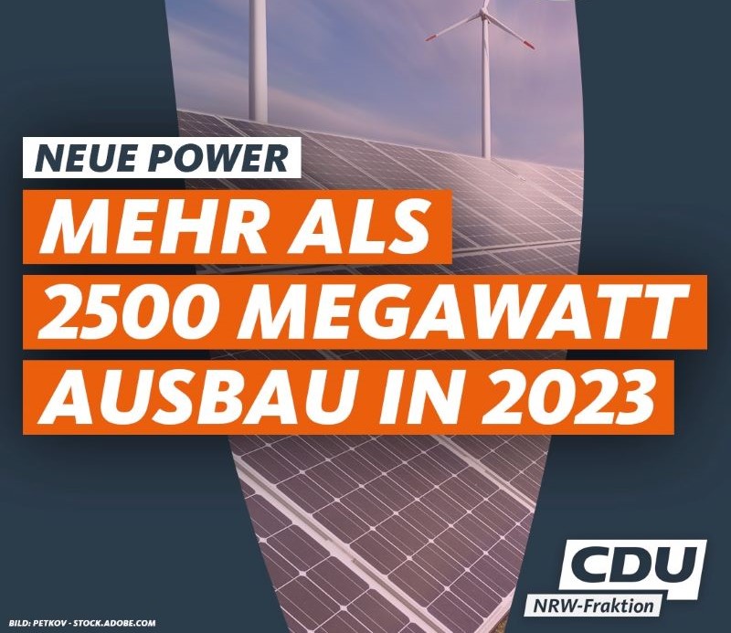 CDU NRW-Fraktion: "Wir gehen voran und bauen die Erneuerbaren Energien aus. Damit erhöhen wir das Stromangebot und steigern die Energiesicherheit - unverzichtbar für unsere Wirtschaft und damit für sichere Arbeitsplätze.